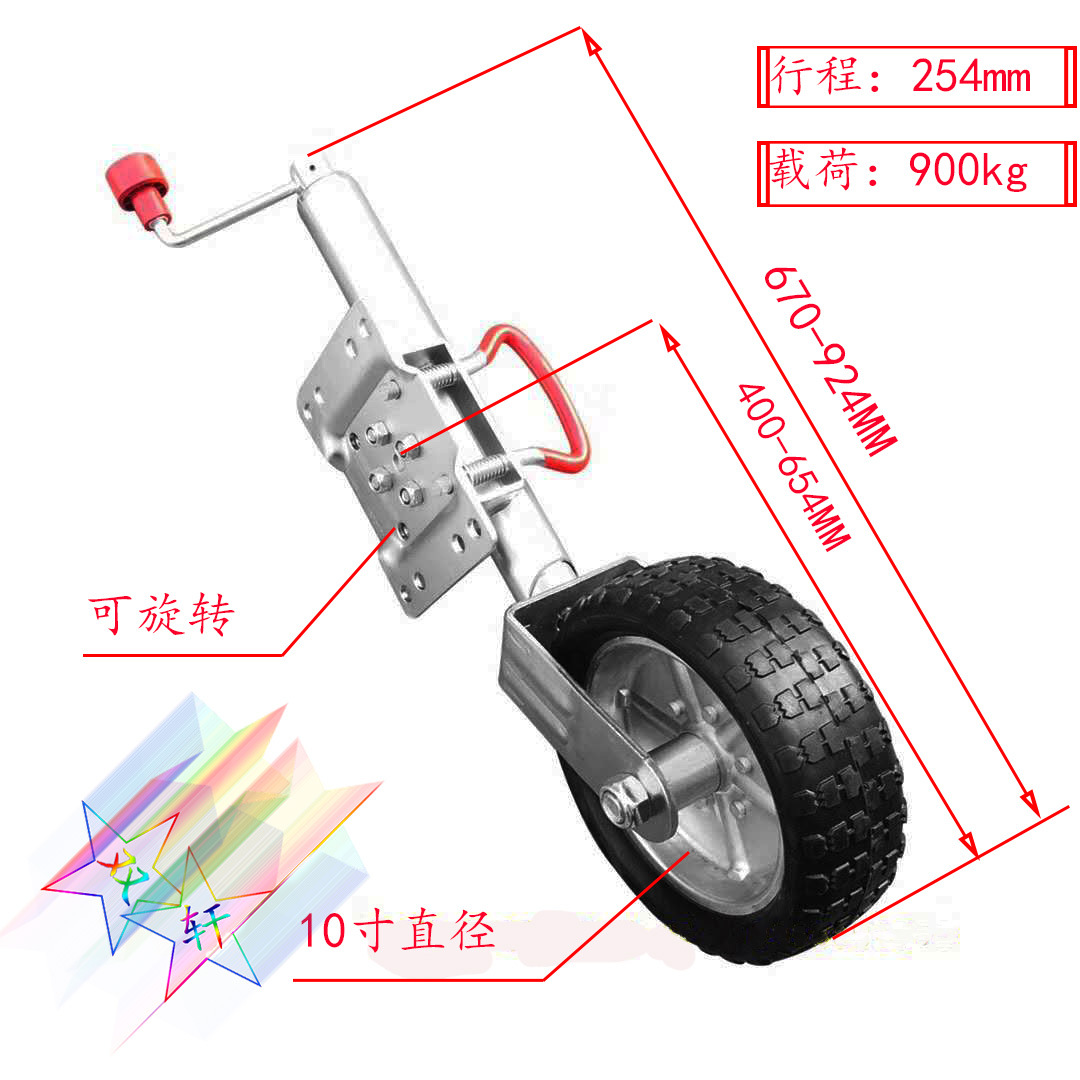 Roda pemandu Jack trailer 10 inci, roda pemandu depan 900kg, dukungan kepala beban besar