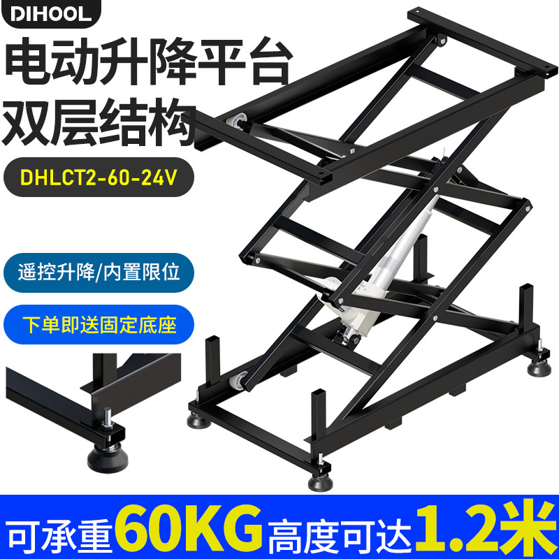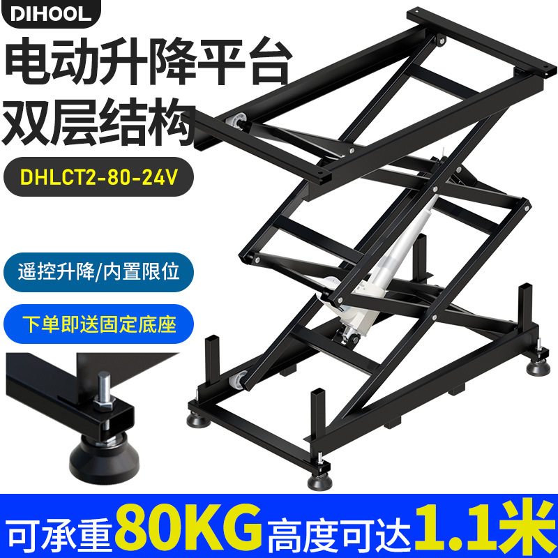 Platform pengangkat listrik dua lapis gunting 80kG lift listrik 12/24V smart home industri lift