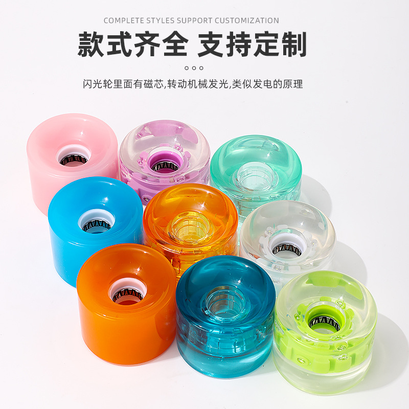PU Tahan Aus Roda Besar Nyaman Guncangan Rendah Guncangan Luar Ruangan Semen Aspar Permukaan Roda Bersinar Inti Magnetik Kembali Tinggi