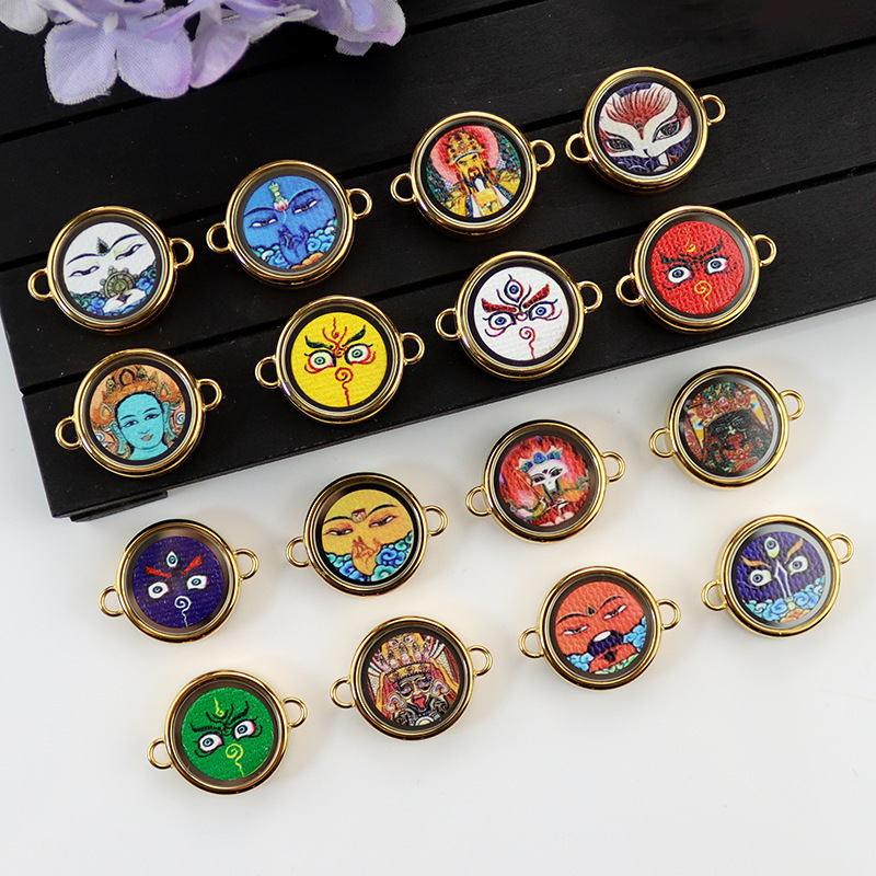 Grosir gaya Xizang thangka kecil zachilam peruntungan lima arah kotak gawu rubah sembilan ekor liontin telinga gantung ganda dapat menahan benda