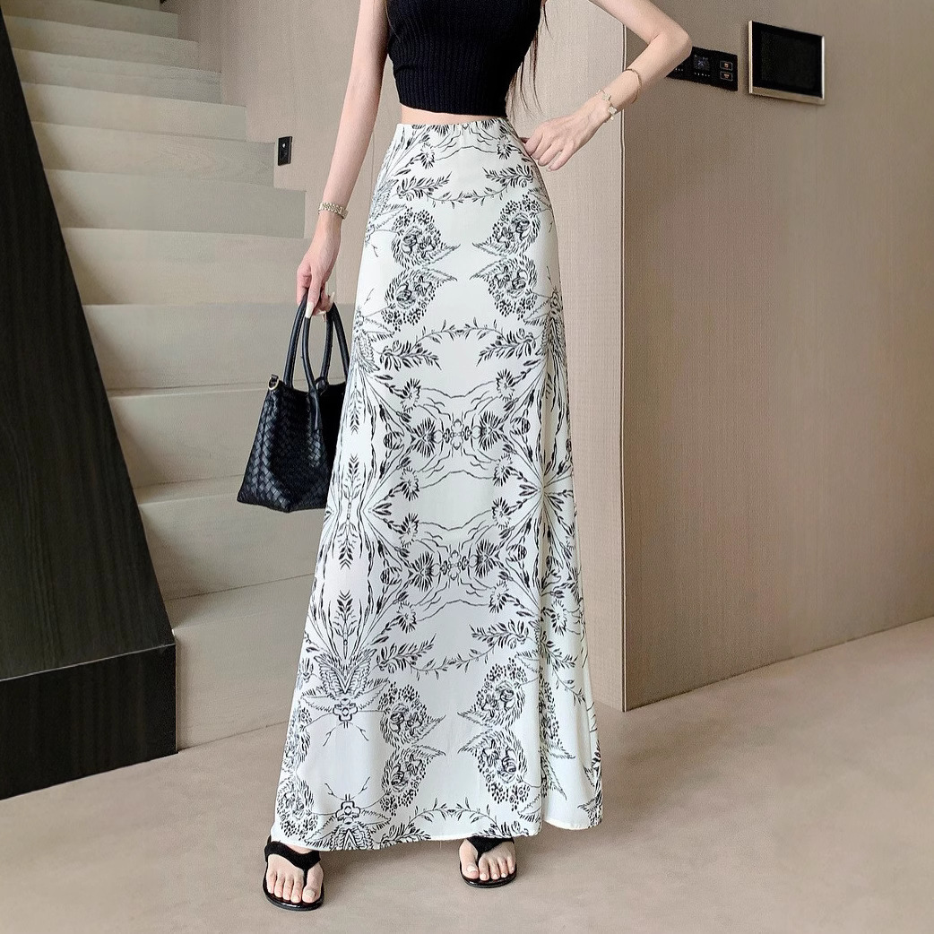 Rok Setengah Badan Bunga Berwarna Pinggang Tinggi Retro Gaya Prancis Model Baru Musim Panas 2025 Wanita Menutupi Selempang Terlihat Kurus Rok Panjang Lengan