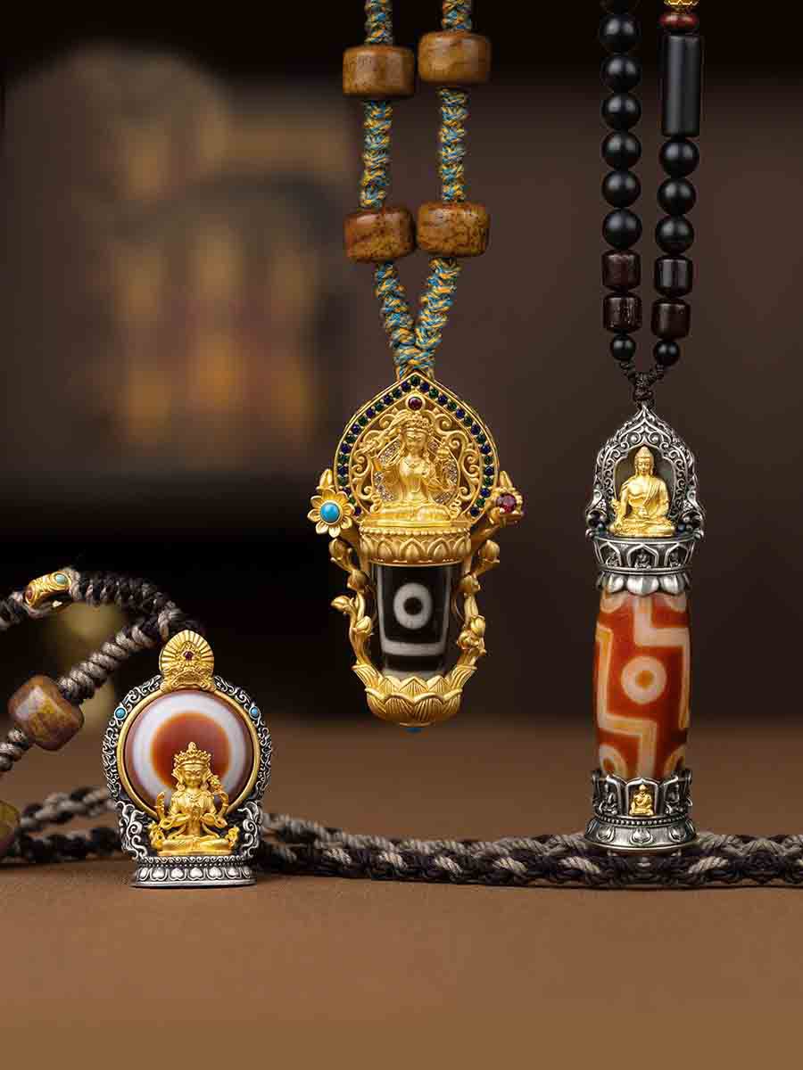 Liontin Mutiara Sembilan Mata Liontin Mutiara Enam Karakter Xizang Asli Liontin Model Pria dan Wanita Pabrik Penjualan Langsung