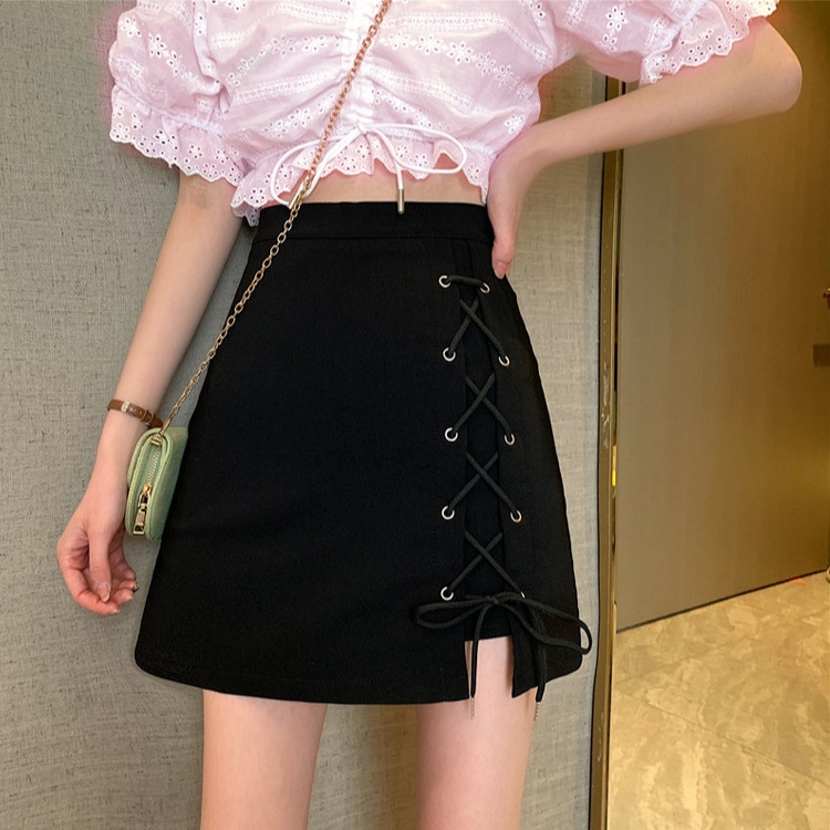 Rok baru musim panas dan semi 2023 rok pinggul hitam rok wanita desain rasa tas rok pinggang tinggi rok a-line
