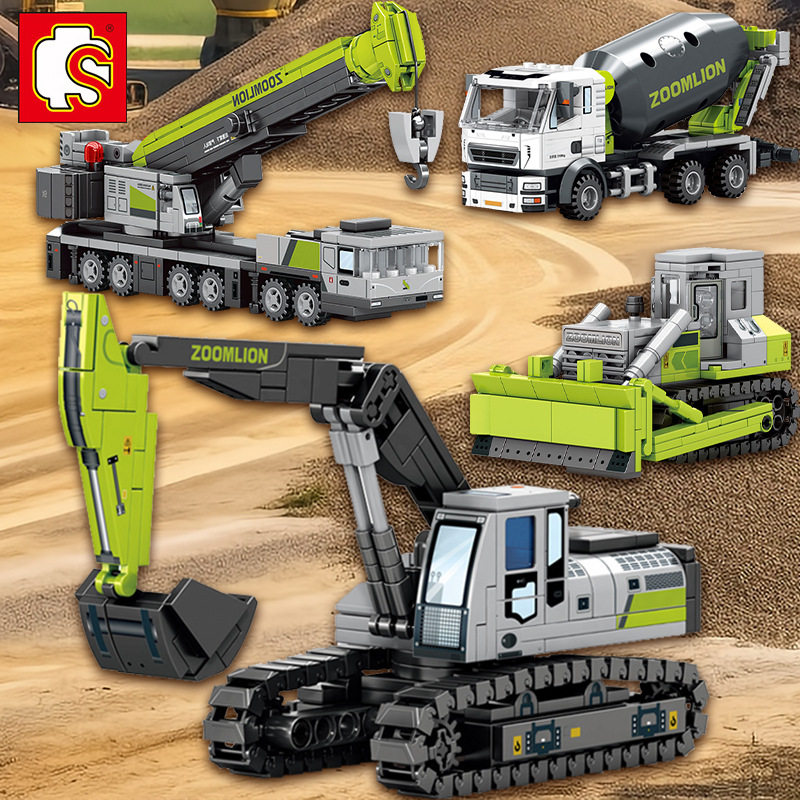 Senbao mainan edukasi anak-anak, mainan anak laki-laki, model puzzle mobil, kendaraan teknik perakitan, ekskavator, mainan edukasi anak-anak, blok bangunan Senbao