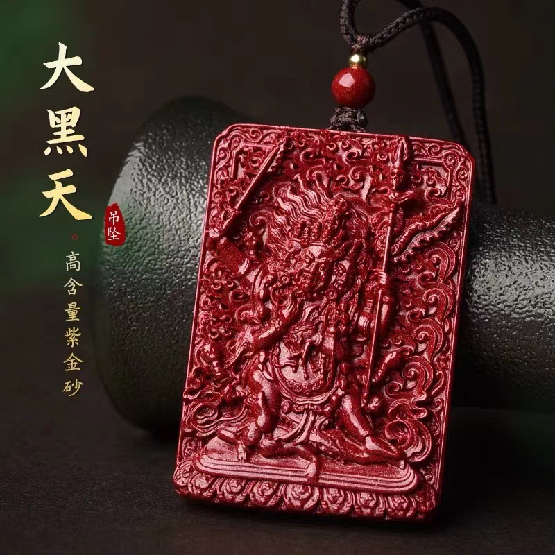 Cinnabar kalung liontin kekayaan langit hitam besar, Kalung liontin empat lengan Mahaga isi tinggi ungu emas pasir