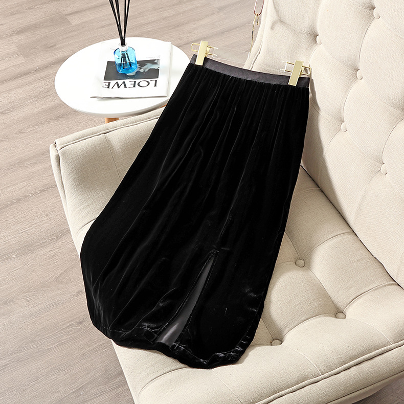 Pakaian wanita minyak selatan trendi chic 2281305 rok baru musim gugur dan musim dingin rok pelangsing seksi belahan beludru sutra