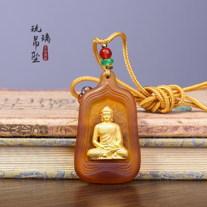 Kalung alu berlian Buddha obat glasir liontin Buddha Guanyin lengan Delapan liontin pelindung tubuh pria dan wanita