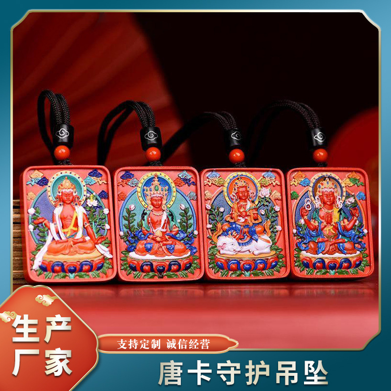 Liontin Jimat Tangka yang Dicat Cinnabar Liontin Patung Buddha kasa merah tanda dewa pelindung tahun kelahiran pria dan wanita