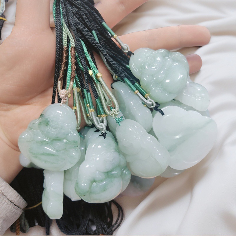Tianshan Green Ping An Gesper Liontin Buddha Guanyin Liontin Giok Liontin Giok Sutra Emas Mengambang Hijau Menguntungkan Awan Kalung Pasokan Langsung