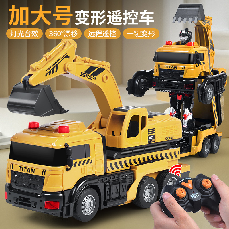Mainan ekskavator listrik, robot berlian mobil remote control elektrik deformasi satu klik, mainan ekskavator baru lintas batas
