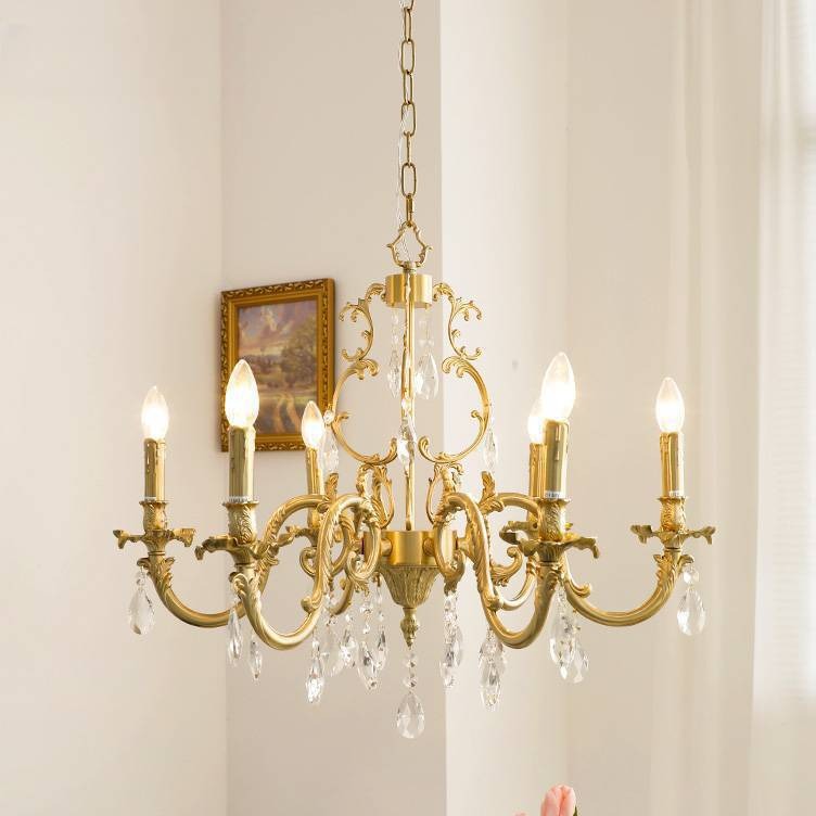 Lampu gantung kristal ruang tamu retro Amerika antik klasik kuno tengah lampu gantung restoran retro Prancis kuningan enam-lengan