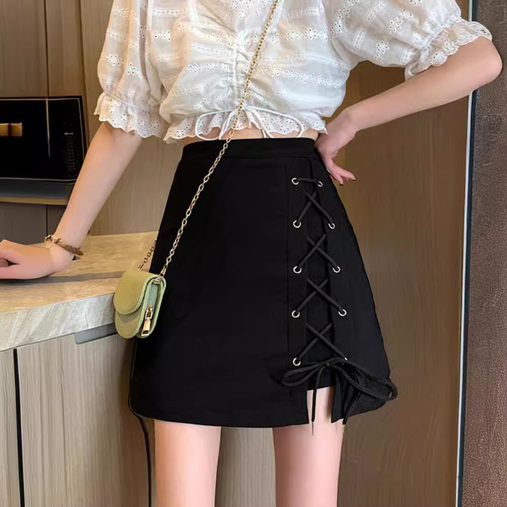 Rok Model Baru Musim Panas 2022 Rok Pinggul Hitam Rok Setengah Badan Rok Desain Musim Panas Wanita Rok A-Line Pinggang Tinggi Rok Pendek