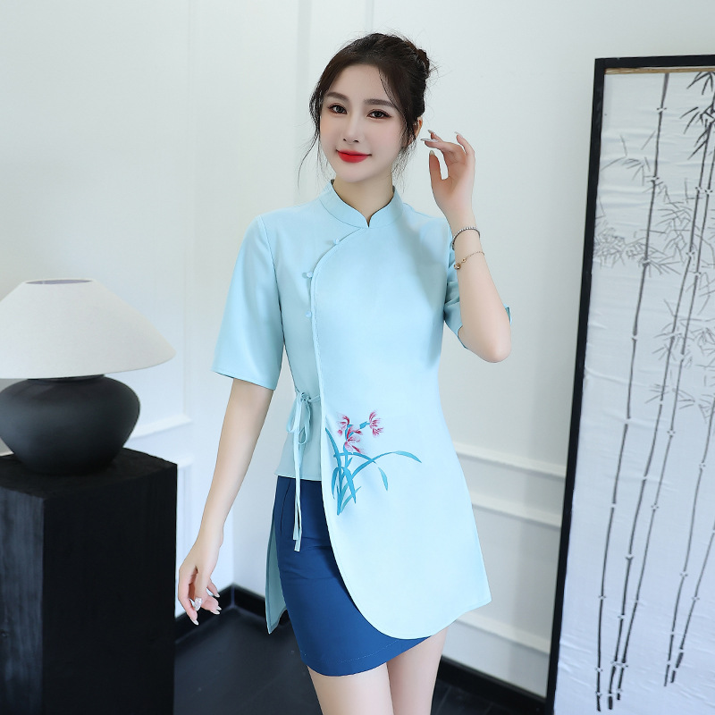 Baju sauna Pusat Kesehatan mandi kaki setelan kerja teknisi pakaian kerja 2023 musim gugur dan musim panas baru pakaian kerja rok dibungkus klub pijat kaki