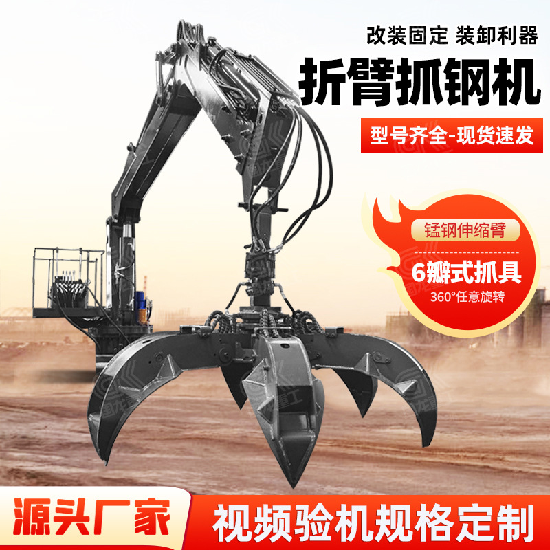 Mesin penggali baja lengan lipat, alat ambil potongan besi derek 360 ° alat bantu yang dapat diganti 3 T ambil mesin baja