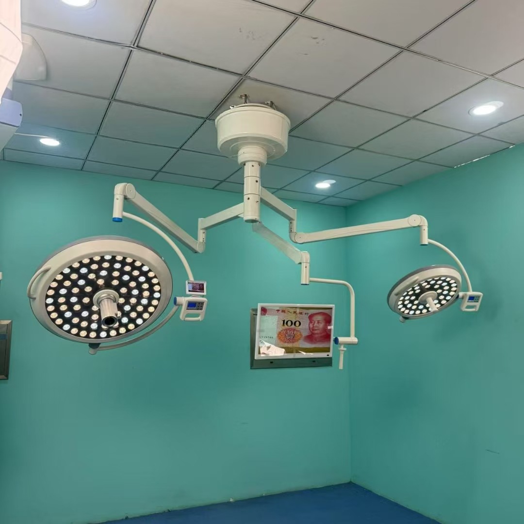 Lampu operasi medis tanpa bayangan, lampu operasi gantung vertikal led untuk ibu dan anak kepala ganda LED750/550