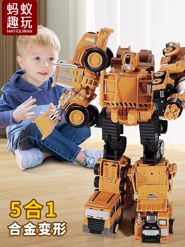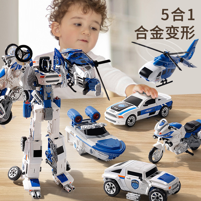 Anak laki-laki paduan deformasi mainan enam puluh satu pas King Kong model asli mobil robot mobil polisi lima dalam satu