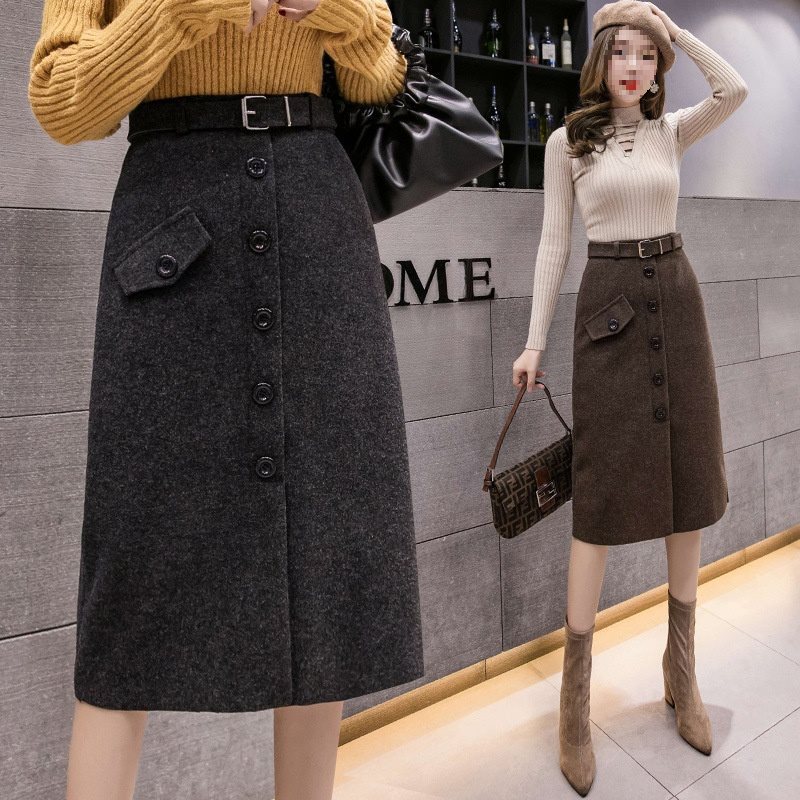 Rok Setengah Badan Wol Model Tebal Rok Setengah Badan Musim Dingin 2024 Rok Setengah Panjang Elegan Terlihat Langsing Garpu Satu Langkah
