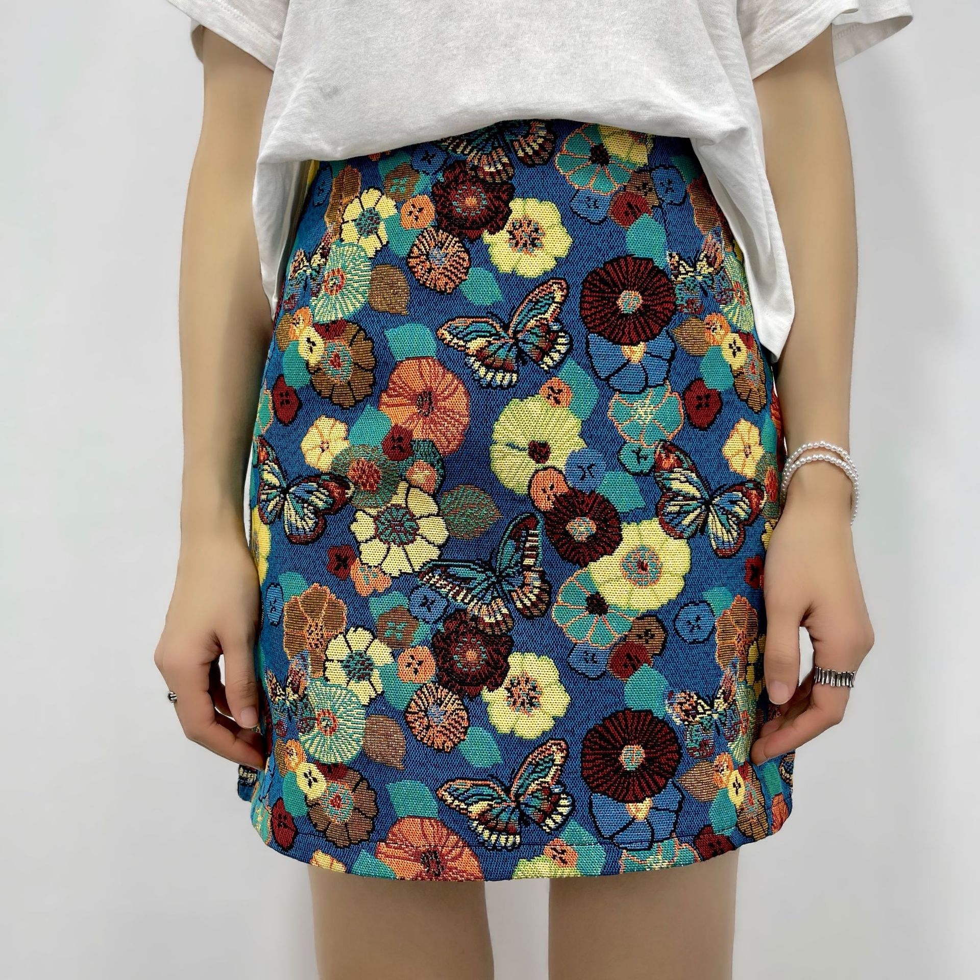 Butterfly flower rok wanita model a-line, rok wanita retro pinggang tinggi, rok pelangsing modis Eropa, rok a-line bordir bunga 2022