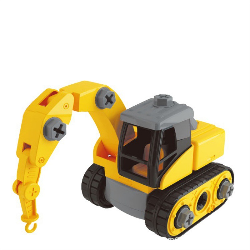 Kotak portabel kecil swakriya anak, mainan mobil mainan teknik perakitan kuning lengan derek dapat dilepas