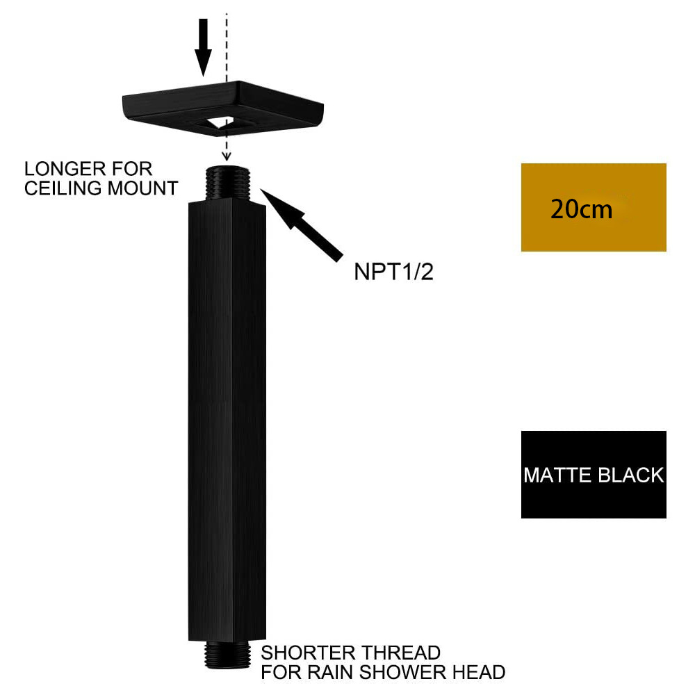 Tabung gantung Pancuran 4 titik persegi baja tahan karat batang penghubung kolom Pancuran tersembunyi tabung Pancuran lengan Pancuran dinding tersembunyi