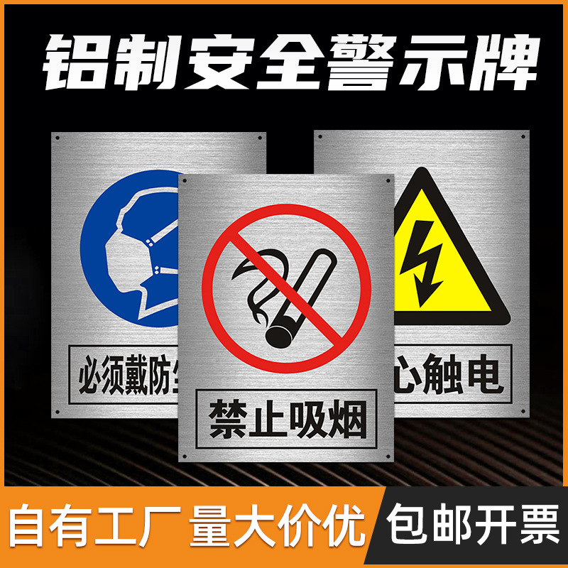 Papan reklame tanda peringatan keselamatan aluminium, tanda konstruksi bengkel pabrik, slogan perhatikan keselamatan pelat aluminium ban