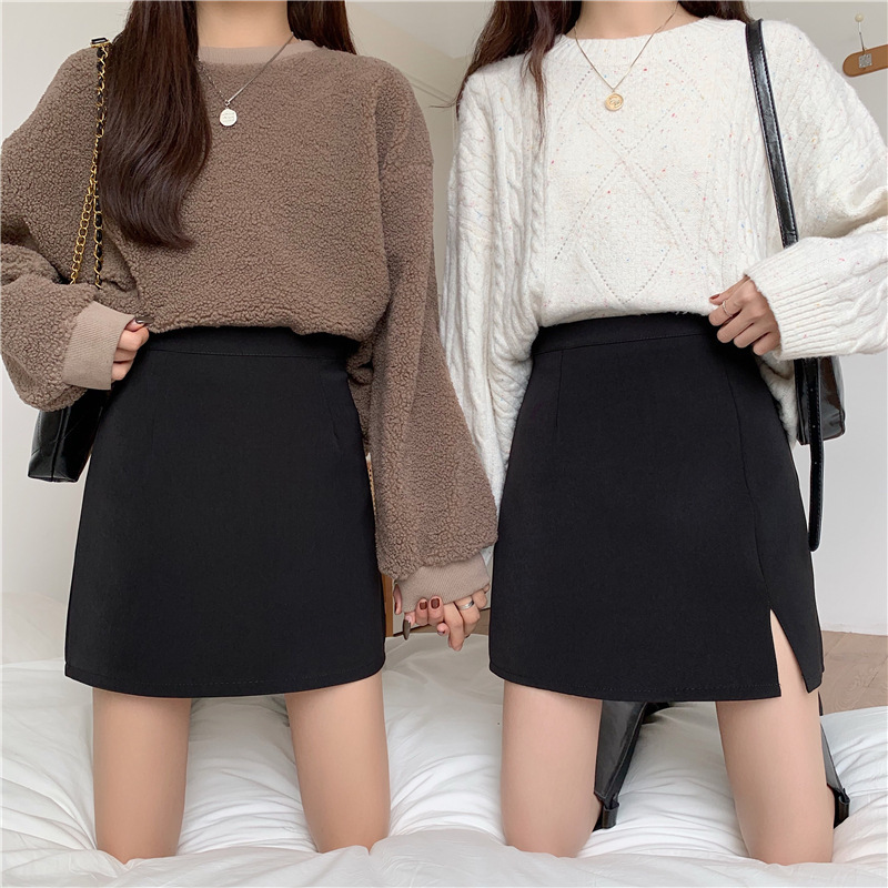 Rok bungkus a-line anti eksposur 20203 rok belahan pinggang tinggi rok profesional hitam musim panas wanita