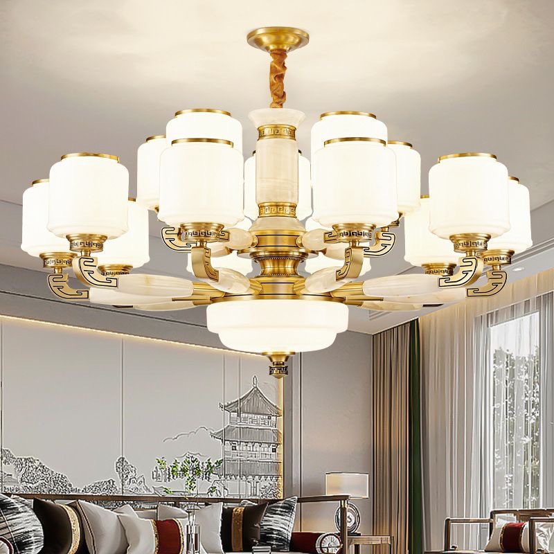 Semua tembaga baru lampu gantung ruang tamu gaya Cina lampu restoran giok atmosfer gedung dupleks Villa tinggi tinggi tinggi pencahayaan rumah grosir