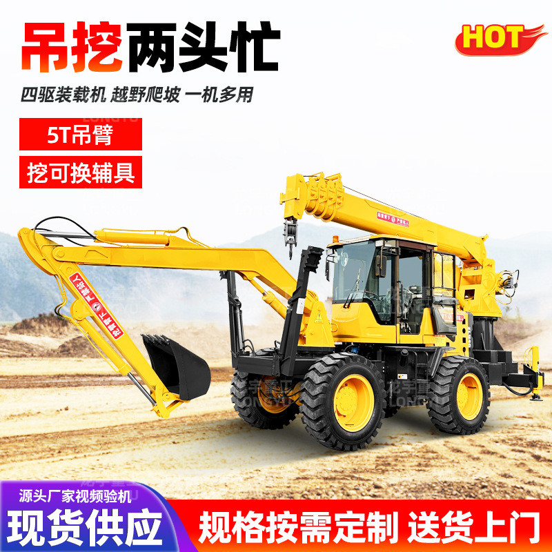 Mesin derek muatan dua ujung sibuk 5 ton lengan alat bantu yang dapat diganti penggerak empat roda pemuat modifikasi derek menggali lengan dua ujung sibuk