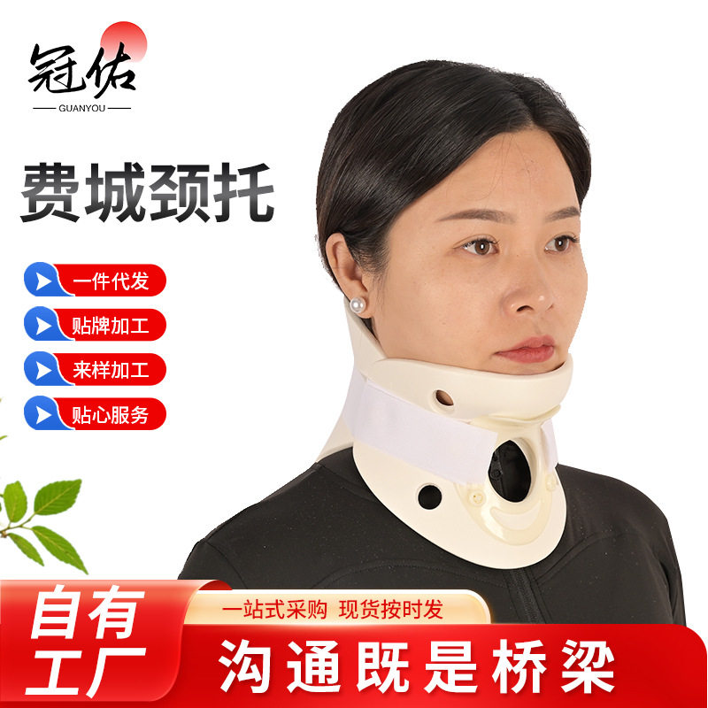 Penyangga leher polimer Guanyou untuk postur kepala maju, penyangga leher Philadelphia berlubang bulat putih tipe terpisah yang dapat bernapas, imobilisasi tulang belakang leher.