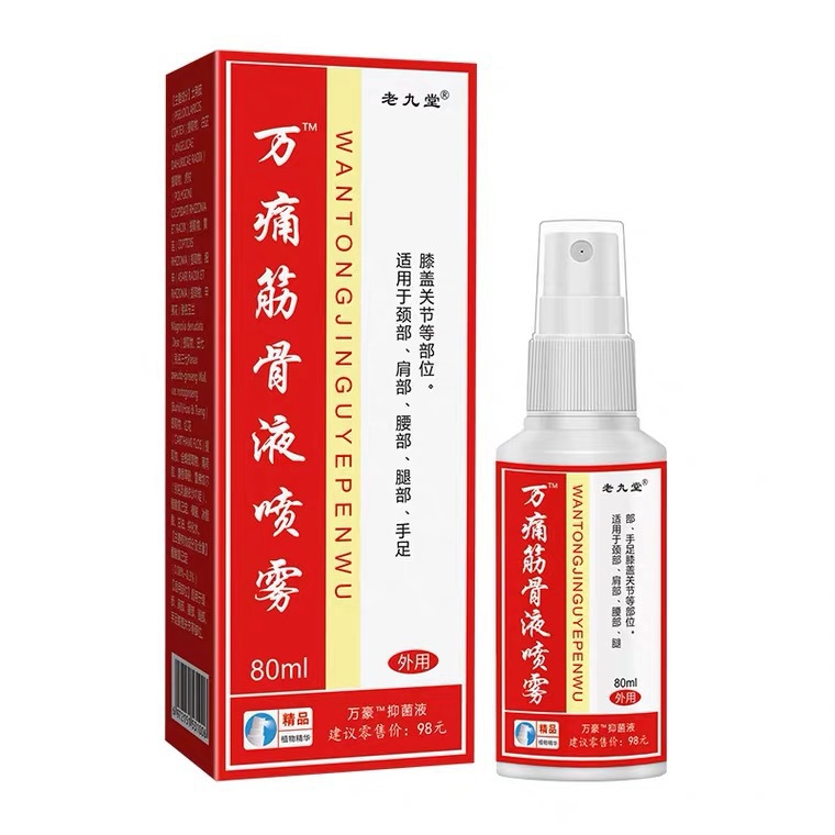 Laojiutang minyak esensial pijat sendi, cairan semprotan otot dan tulang 80ml leher bahu pinggang pengiriman satu buah