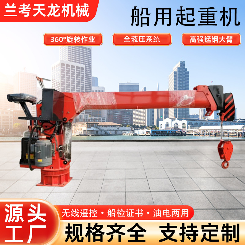 Dok pancing perahu kecil, kendaraan dek teleskopik lengan angkat Laut 1 ton 2T listrik otomatis penuh derek hidrolik