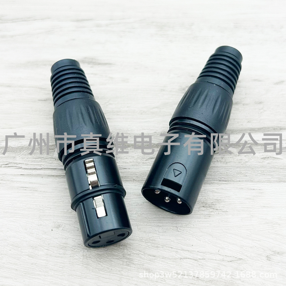 黑色三芯卡侬头 调音台插头 XLR平衡插头 话筒插头 3芯卡龙公母头