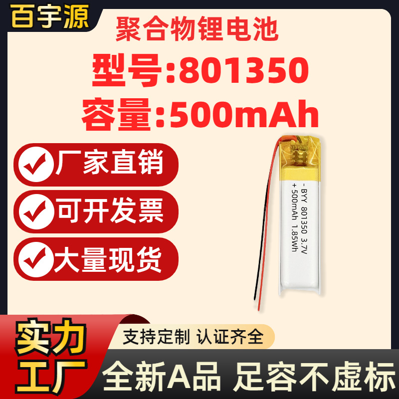 Produsen sumber 801350 baterai lithium polimer 500mAh500 mAh 3.7V kapasitas kaki paket A baterai lunak
