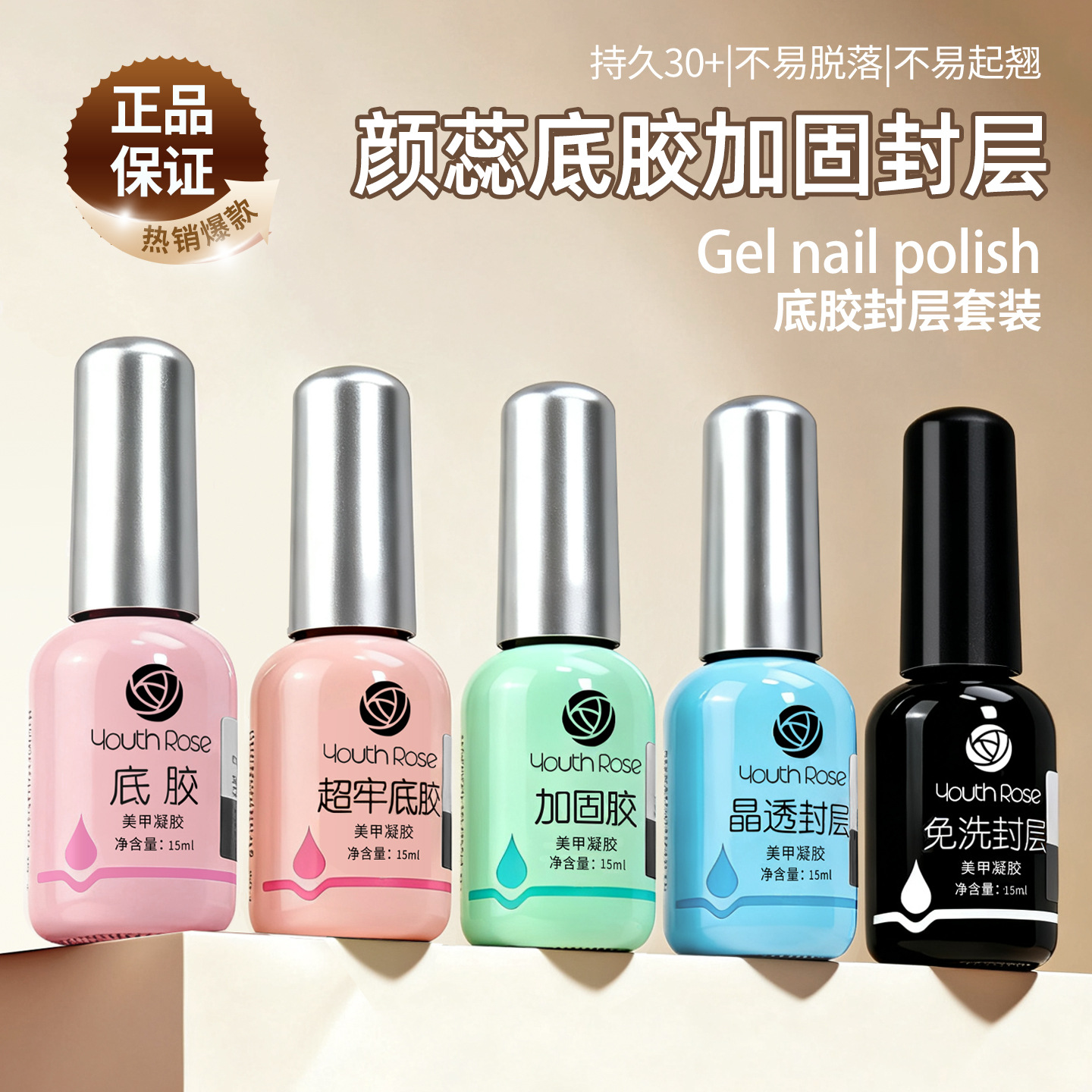 Yanrui gel base coat fungsional universal, gel penguat, top coat matte tanpa bilas, set gel fototerapi untuk salon kuku lintas batas
