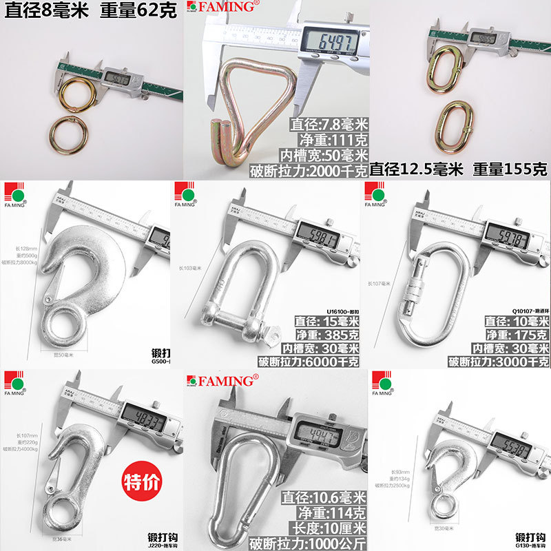 Kait pengaman bentuk mata cakar berputar, kait penguncian otomatis, kait kargo, kait selempang, kait angkat, koleksi lengkap