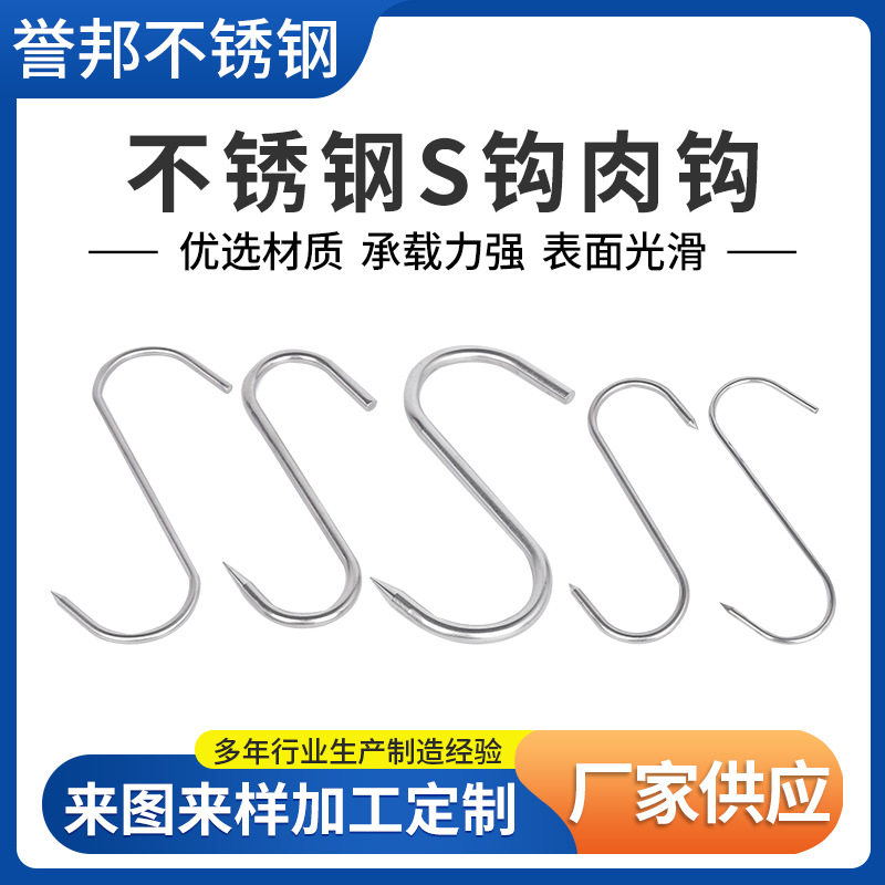Kait daging stainless steel 304, kait gantung sapi dan domba, kait gantung rumah tangga, kait besi stainless steel S, kait gantung frozen