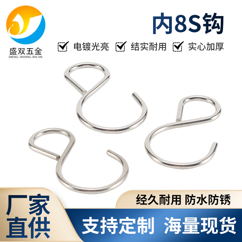 Kait logam bagian dalam 8S, tirai langit-langit kamar mandi, kait S