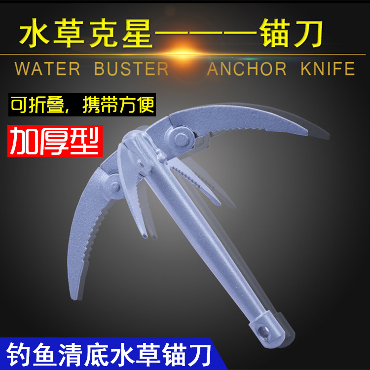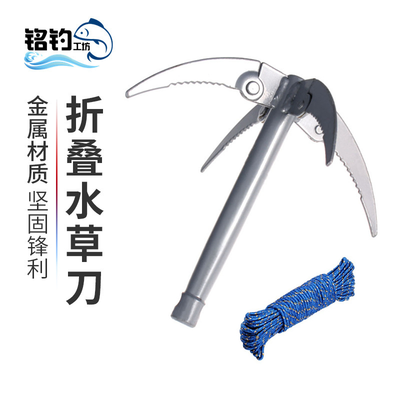 Pisau rumput air kait pemotong rumput pancing kait tarik pancing rumput air baja tahan karat dipertebal pisau jangkar lipat penyiangan