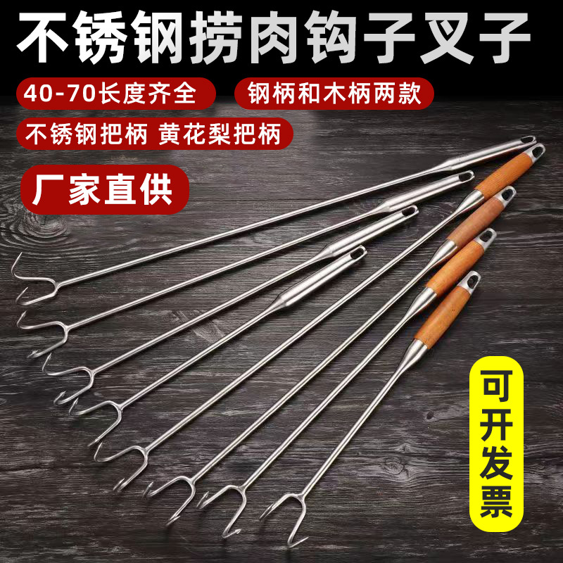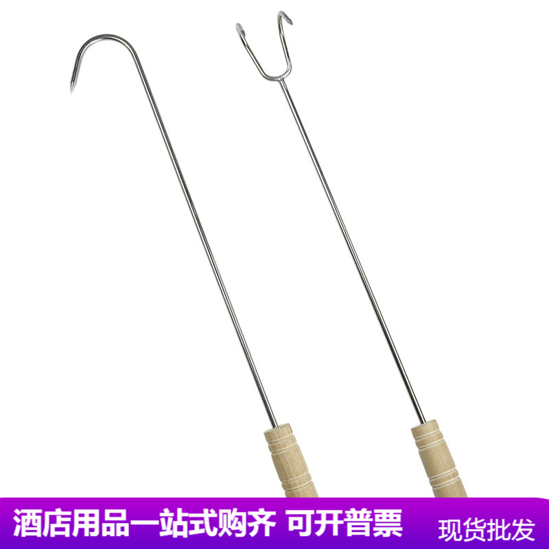 Kait daging baja tahan karat kait daging panggang daging babi sup kait makanan matang pegangan panjang kait pegangan kayu penjualan langsung dari pabrik