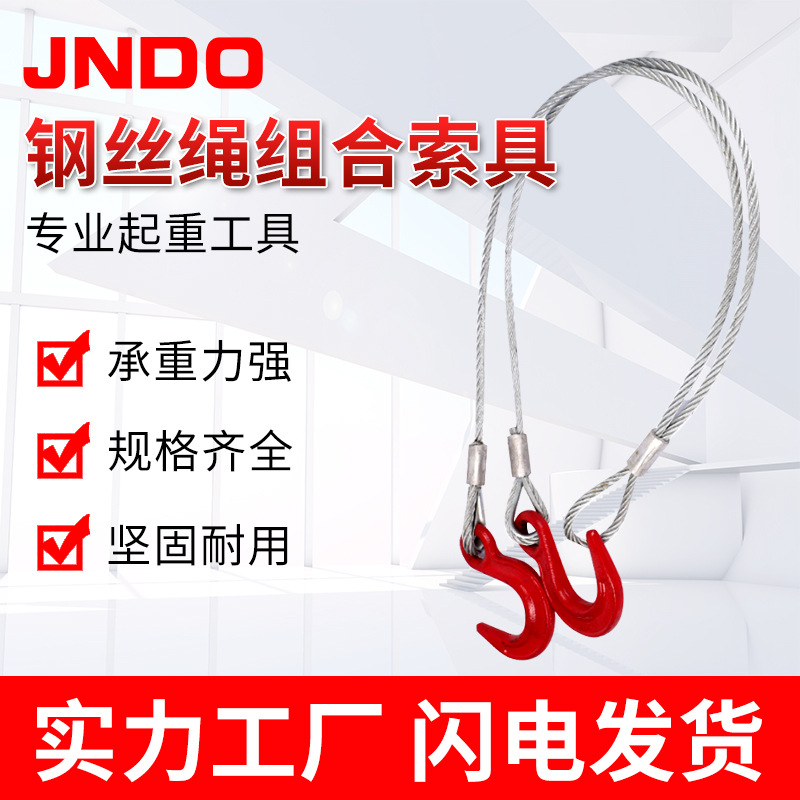 Tali kawat baja kombinasi sling kait pengangkat set lengkap dari kombinasi penyebar plug-in kompresi tali kawat baja tali-kaki tunggal JIGGING