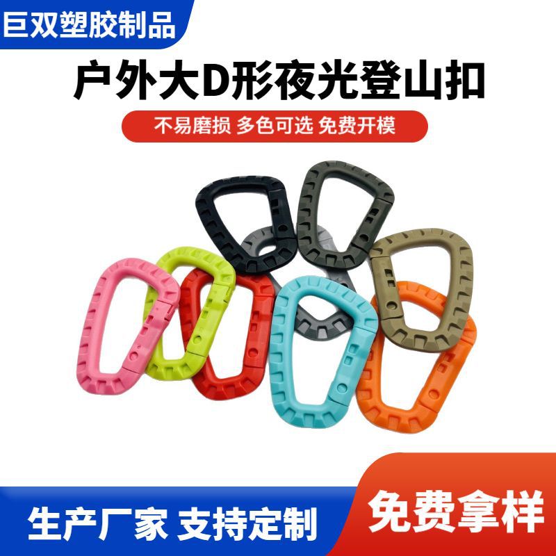 Kait hitam Army oranye khaki panjat tebing cepat gantung plastik kait perhiasan kait luar ruangan besar berbentuk D karabiner bercahaya