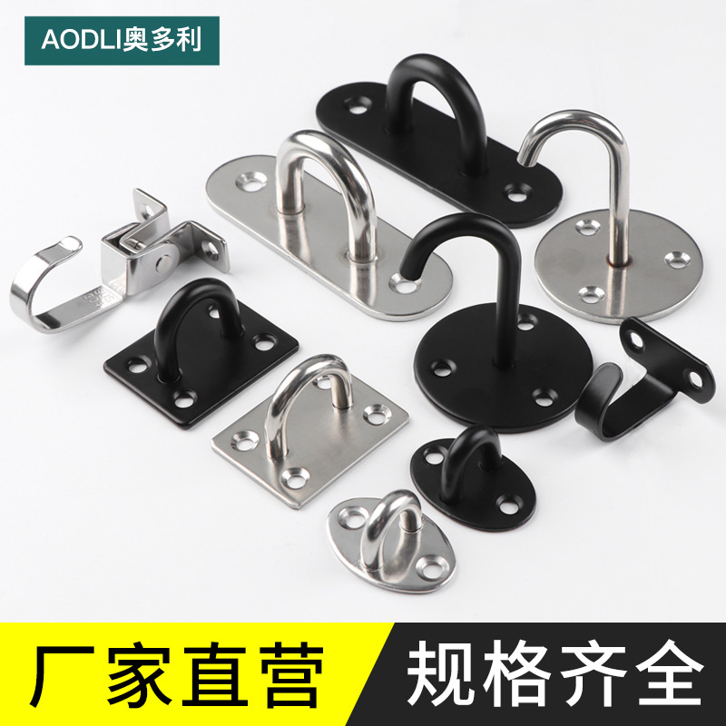 304 kait atap baja tahan karat, cincin kait dinding bentuk U, kait tetap, cincin tali gesper pintu hitam lubang pelat gesper