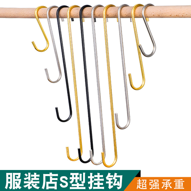 Kait baja panjang untuk pakaian, cantelan pakaian tipe S, kait logam panjang warna emas, kait besi multifungsi S