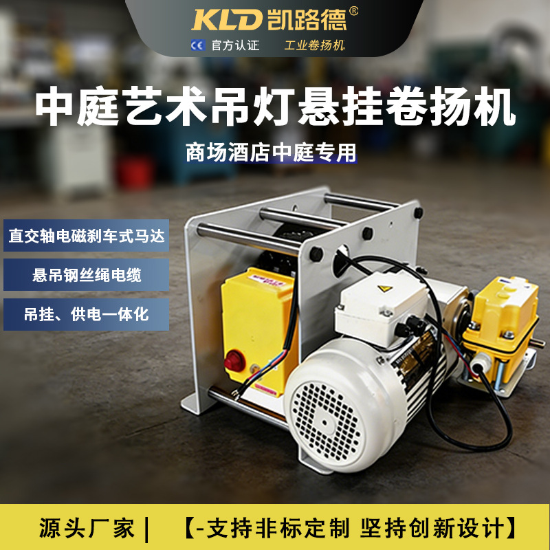 Pasokan produsen hook listrik dengan kabel terintegrasi mesin pengangkat lampu gantung seni atrium teater pusat perbelanjaan