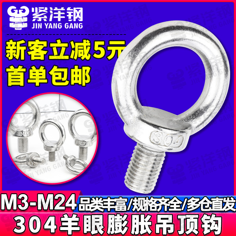 304 baja tahan karat cincin angkat sekrup cincin baut diperpanjang mengangkat kait sekrup cincin JIGGING M6/M8/M10/M12