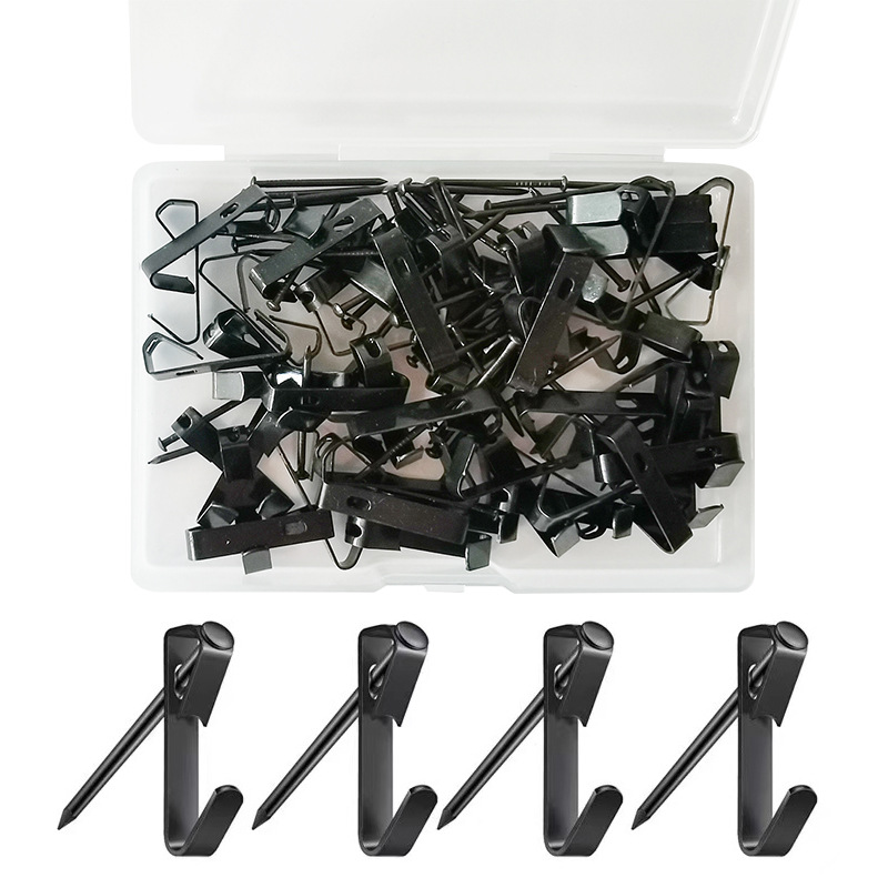 Kait album hitam lintas batas 30LB, gantungan mantel dinding kayu, bingkai foto kait tersembunyi, kait besi dengan setelan kuku hitam