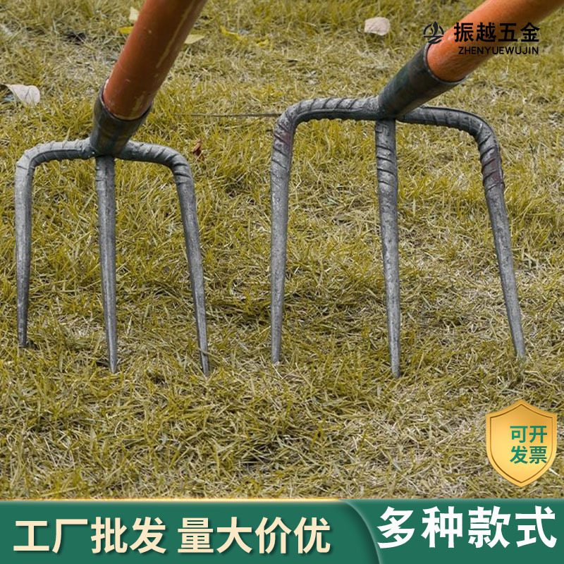 Grosir besi garu tiga gigi empat batang baja batang pengait pertanian melonggarkan tanah
