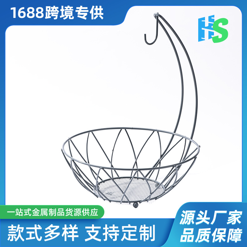 Keranjang buah dua lapisan, keranjang gantung besi lapisan tunggal kait buah mengatur ruang tamu dapat dilepas berongga