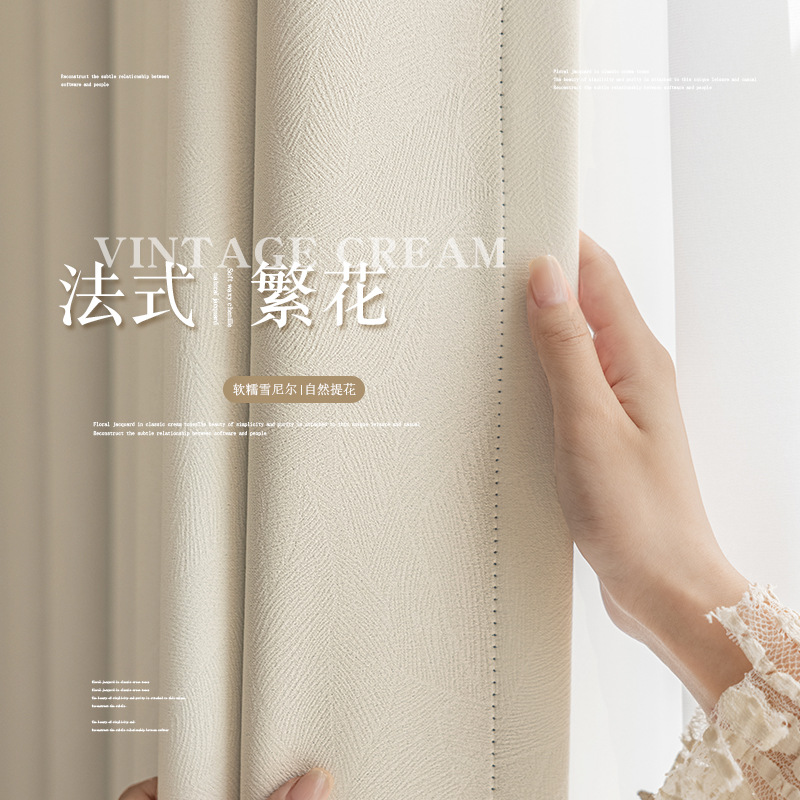 Gaya Prancis Tirai Salju Gaya Krim Kemewahan Ringan Tirai Penuh Cahaya 2024 Populer Kamar Tidur Rasa Superior Ruang Tamu Produk Jadi Bunga