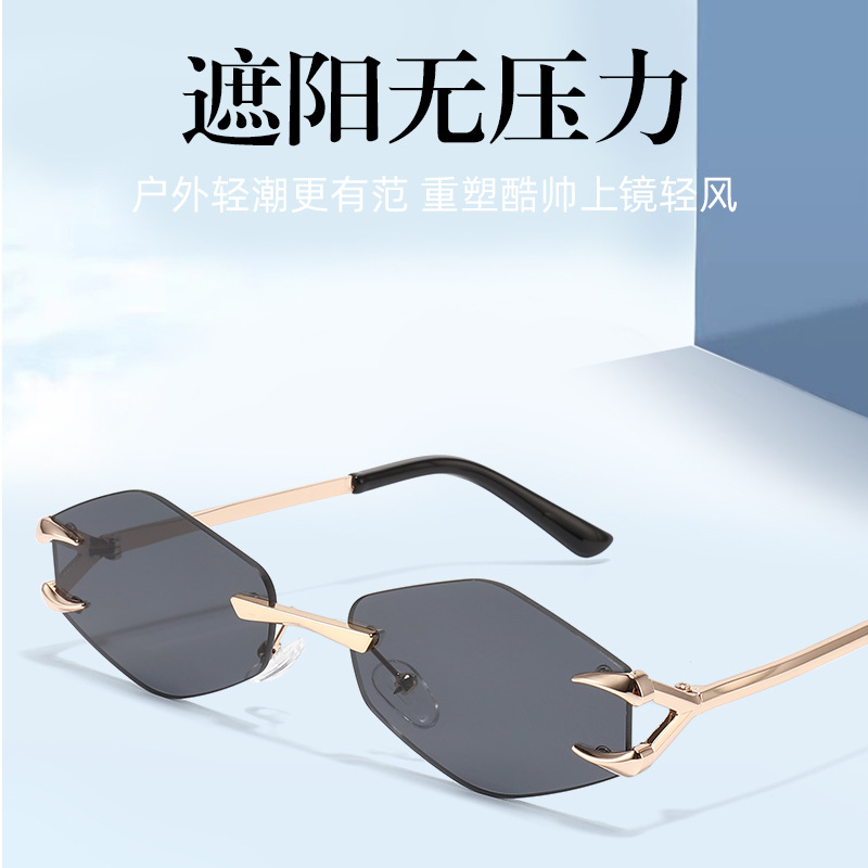 Kacamata Hitam Kait Tanpa Bingkai Modis Kacamata Kelas Atas Pria Kacamata Hitam Mengemudi Trendi Kaki Logam Model Baru Kepribadian Eropa Amerika